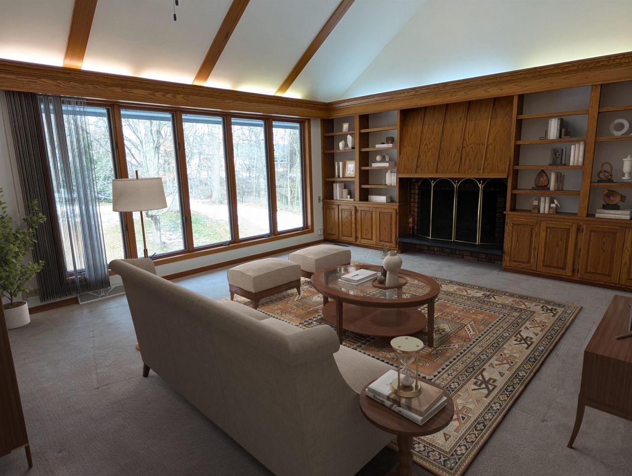 Discover a rare combination of privacy, nature, and convenience on this beautifully wooded 1.5+ acre situated on cul-de-sac lot in Freeport. Designed for main-floor living with more than 2,000 square feet on the main level, this home offers expansive windows, skylights, and serene views that make you feel like you are living in your own private park. A privacy-fenced backyard adds an additional layer of comfort for outdoor living. The spacious kitchen with eating area opens directly into a bright sunroom with access to the multi-level deck and a new 2025 hot tub, perfect for entertaining or relaxing in the tree-top setting. The dramatic living room features a wall of windows, built-in bookcases, fireplace and a vaulted ceiling with additional skylights. The main-floor primary suite includes a walk-in closet and a private full bath. Storage is abundant throughout the home. The walkout daylight lower level is ideal for multigenerational living, guests, or an in-law arrangement. It includes a kitchenette, game area, family room with fireplace, second living room with fireplace, bedroom, office, and full bath, providing exceptional flexibility. This home has been very well maintained with significant updates, including: roof and skylights (2012), professional landscaping (2015), high-efficiency furnace and central air (2017), water heater (2022), driveway sealed (2025), and hot tub (2025). If you're seeking space, nature, and a layout that adapts to every lifestyle need, this property delivers it all. Don't miss the full video tour as well. Some of the furniture may be virtually staged, no alterations or changes to the home!